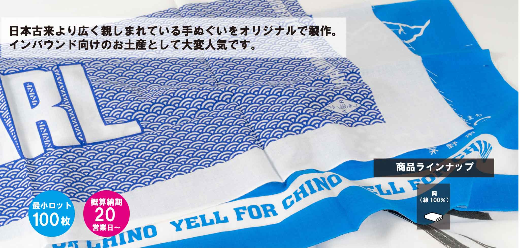 日本古来より広く親しまれている手ぬぐいをオリジナルで制作。